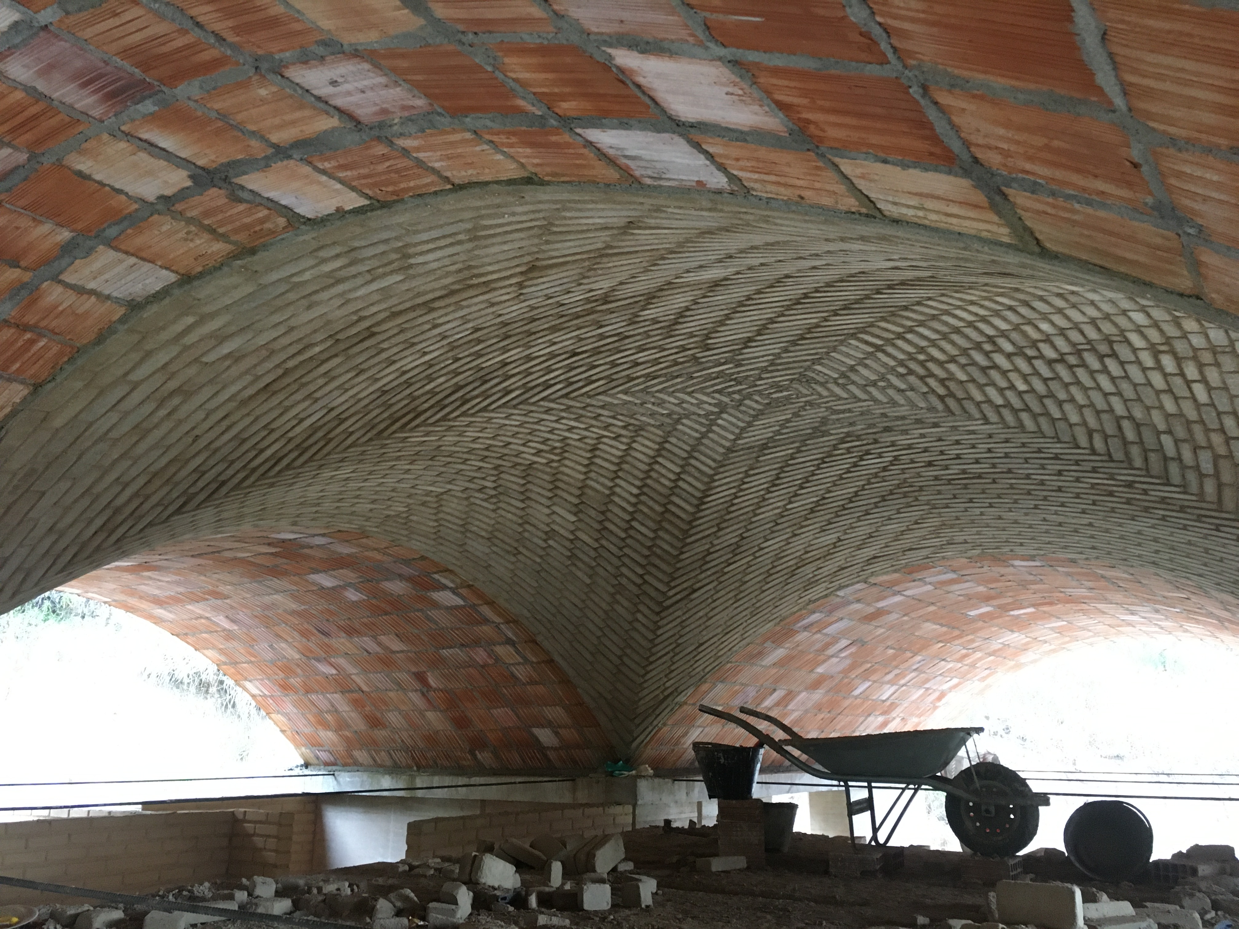 Para a construção das paredes de apoio foi escolhida a técnica da taipa de pilão. Já para a construção das abóbadas e da cúpula, optou-se pela alvenaria de blocos cerâmicos, material de valor bastante acessível na região.