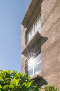 O edifício é composto por três volumes. O maior sendo o bloco de apartamentos, formado por seis pavimentos-tipo, cada qual com 18 suítes idênticas (a 19ª dupla de acesso universal), totalizando 114 unidades. O segundo bloco formado pela sobreposição em camadas das demais funções de apoio: recepção, administração, salão-restaurante e áreas molhadas. Na intersecção destes dois blocos, um terceiro volume vertical faz a conexão física entre os diversos usos, através da caixa de escada e torre de elevadores.