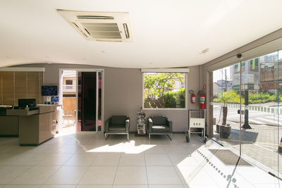 O nível térreo é dedicado ao estacionamento, com planta livre possibilitada pelo uso de pilares-parede alocados em grade modular às vagas. Posta na esquina da quadra, a entrada principal é o ponto focal do edifício.